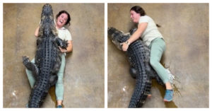El “cariñoso” abrazo de un caimán de más de 90 kilos a su cuidadora: “Innecesario e irresponsable”
